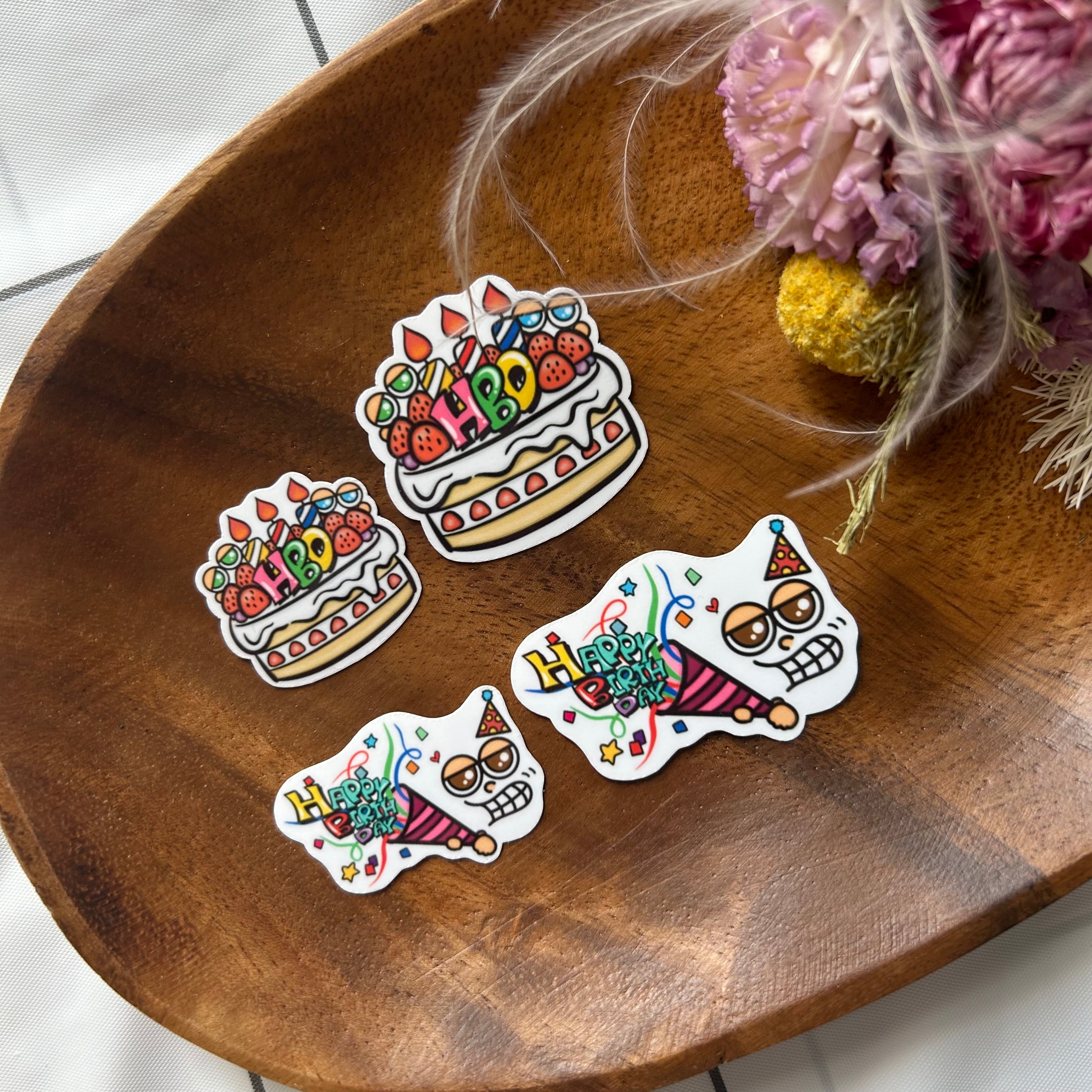 【大4枚】オリジナルハッピーバースデーステッカー シール 耐水性 誕生日 ポップ