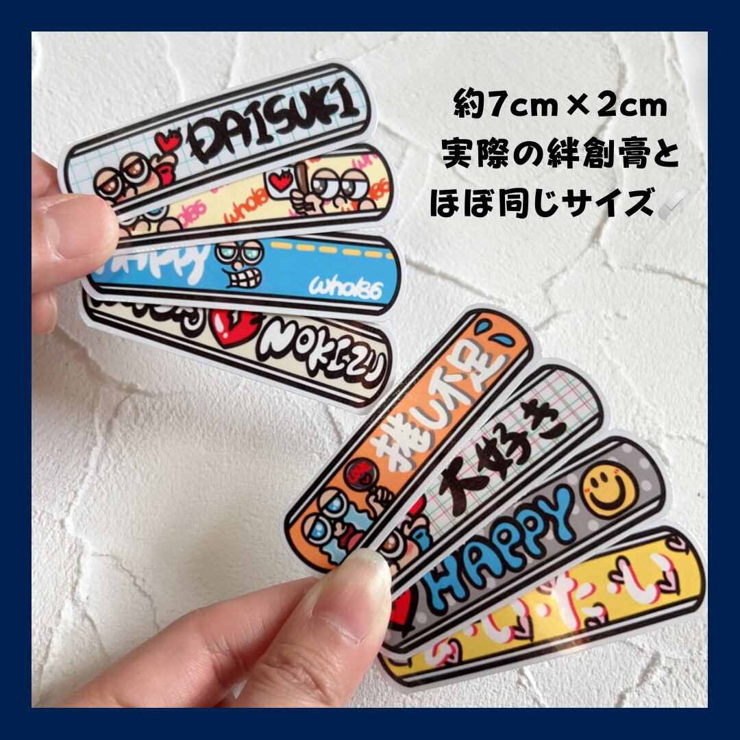 絆創膏?!ステッカー 2枚入 オリジナルイラスト ハンドメイド 耐水性