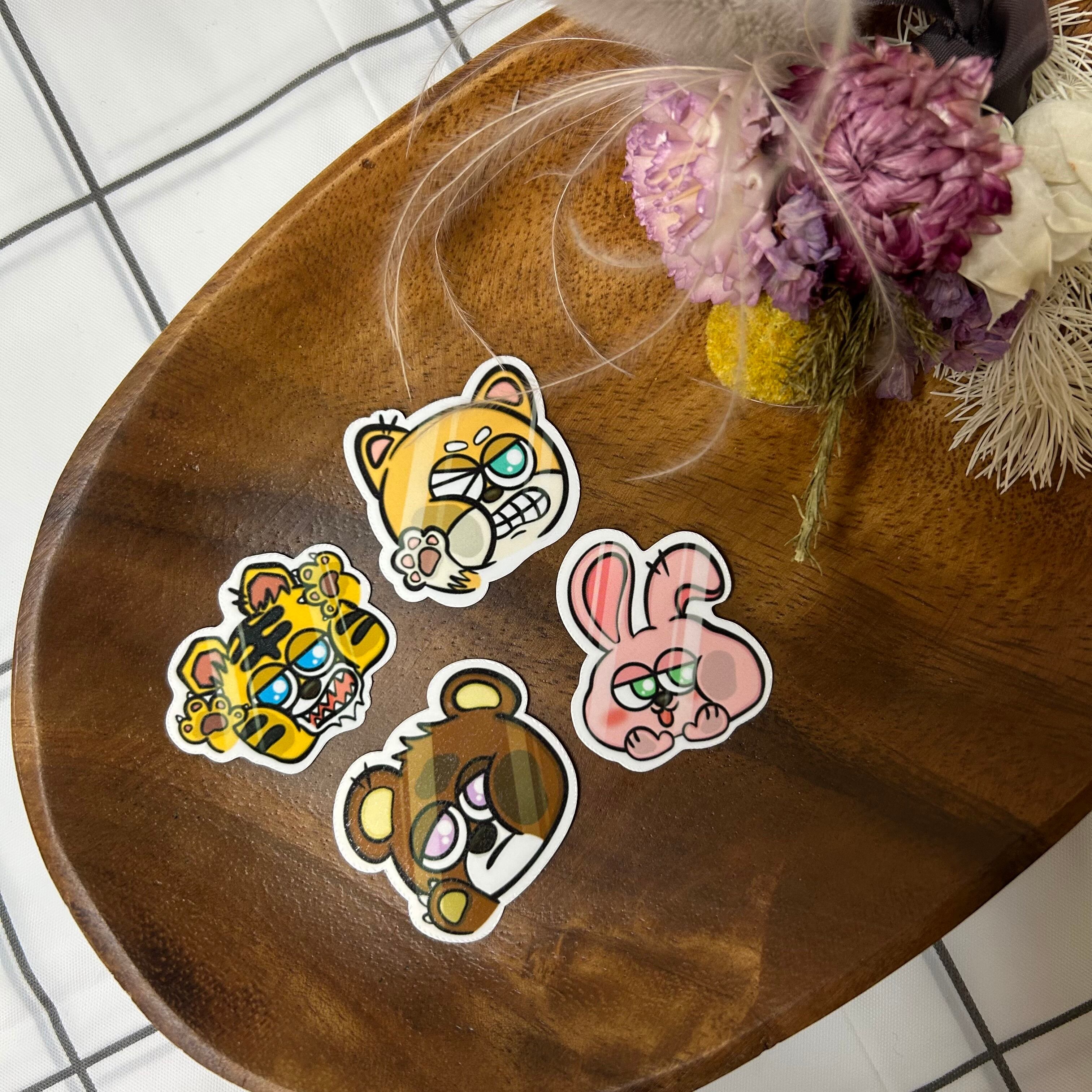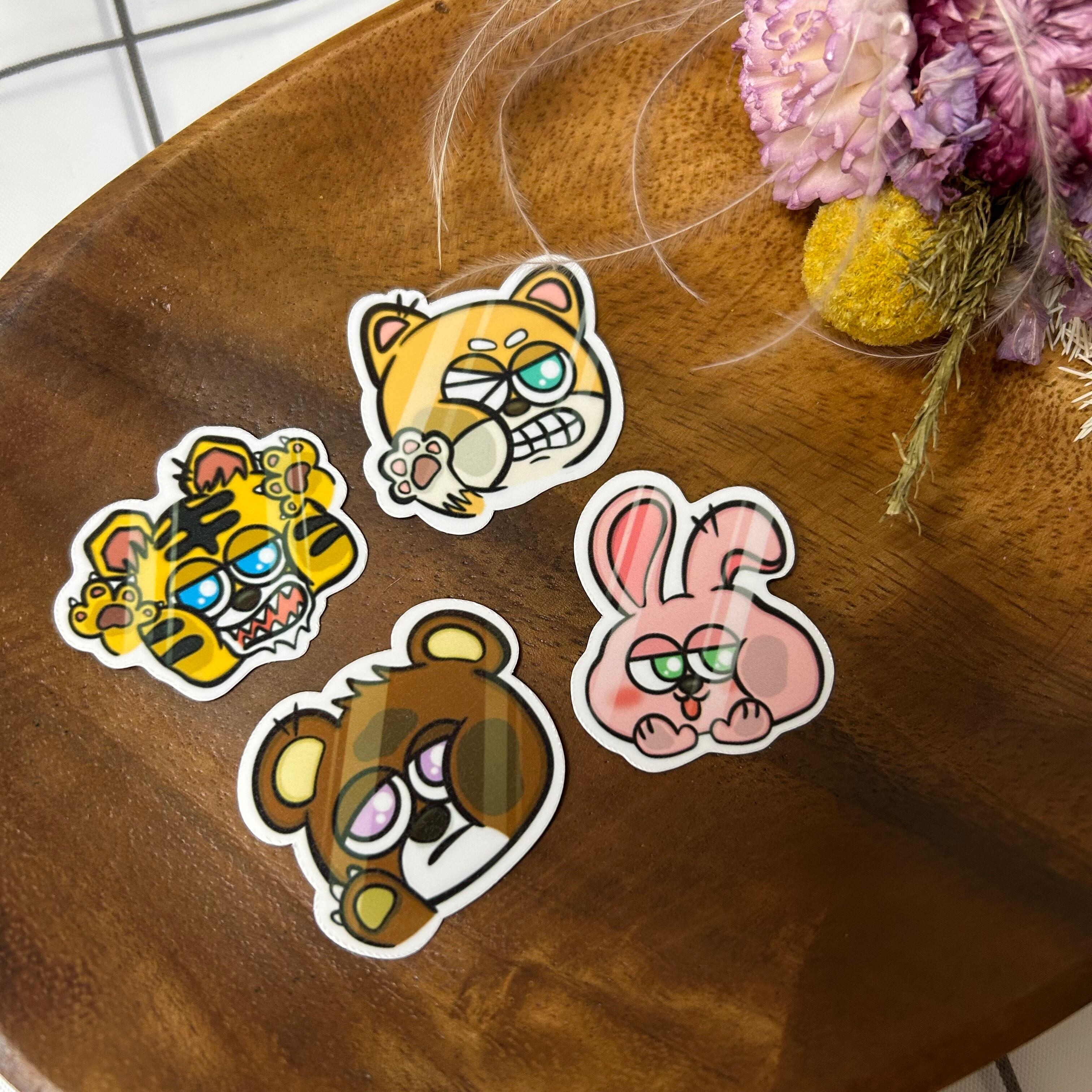 オリジナル アニマルステッカー 4枚入 耐水性 ポップ トラ 犬 クマ うさぎ